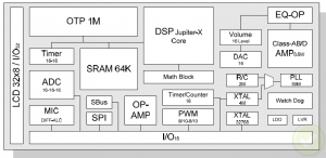 The built-in speaker driving circuit is a mix-mode Analog/Digital design. It can provide high quality analog class A/B type signal, or high transform effect class D type signal.