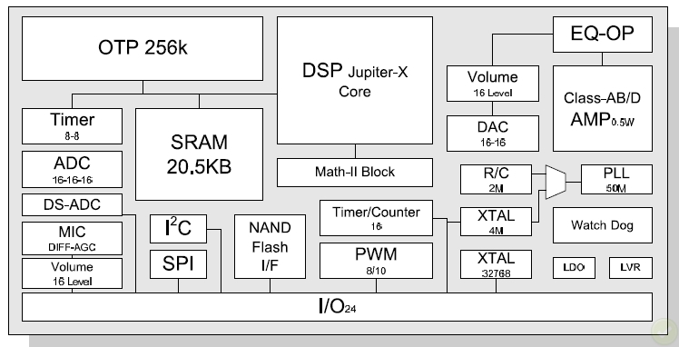 Built-in enhance 16 bits DSP Core (Jupiter-X instruction set).