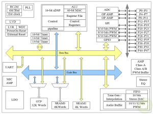 n 1xPWM DAC Speaker Amplifier (10/11/12 bits PWM / 4 driving levels).